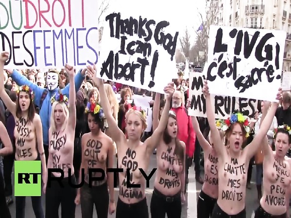 DES FEMENS MARCHENT SEINS NUS À PARIS POUR L'AVORTEMENT