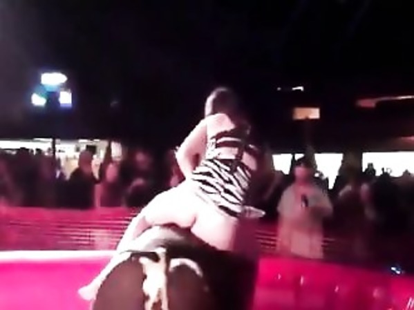 ENCORE UNE FILLE QUI MONTE SUR UN TAUREAU EN MINI JUPE!
