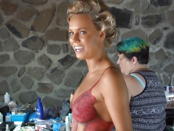 QUATRE JOLIES FILLES AVEC UN MAILLOT DE BAIN EN BODYPAINTING