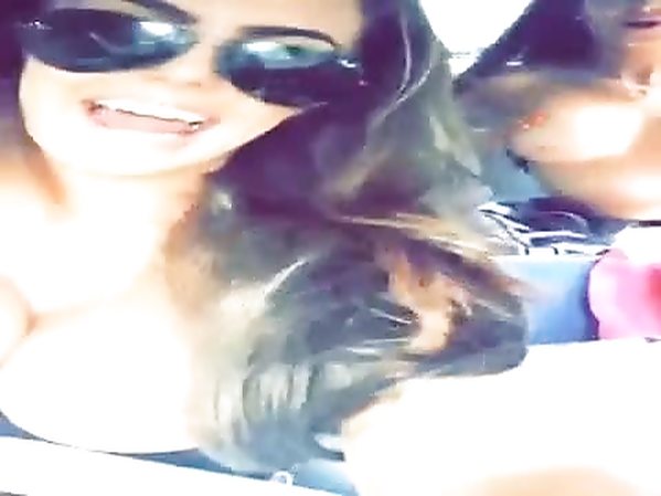 3 COPINES PULPEUSES EXHIBENT LEUR SEINS EN VOITURE