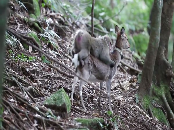 UN MACAQUE ESSAIE DE S'ACCOUPLER AVEC UNE BICHE SIKA