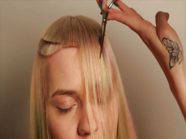 UNE COIFFEUSE RÉALISE UNE COUPE DE CHEVEUX ORIGINALE SUR LA MODÈLE JULIA ANDREEVA