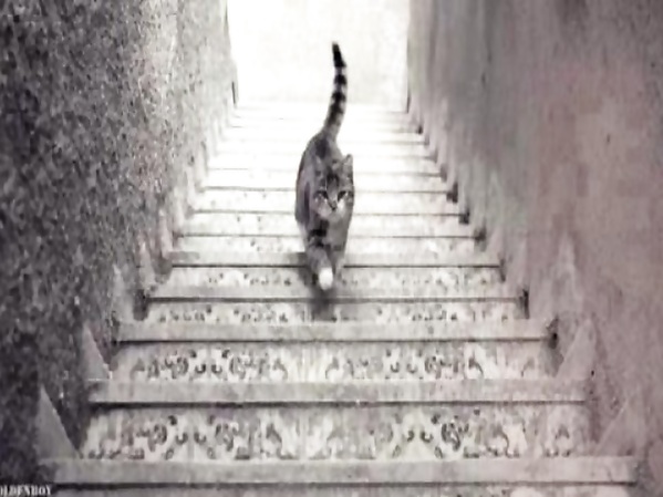 CE CHAT MONTE OU DESCEND LES ESCALIERS?