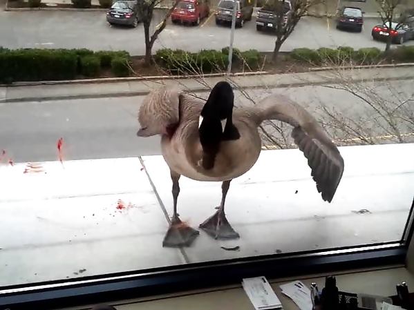 UNE OIE ATTAQUE VIOLEMMENT SON PROPRE REFLET