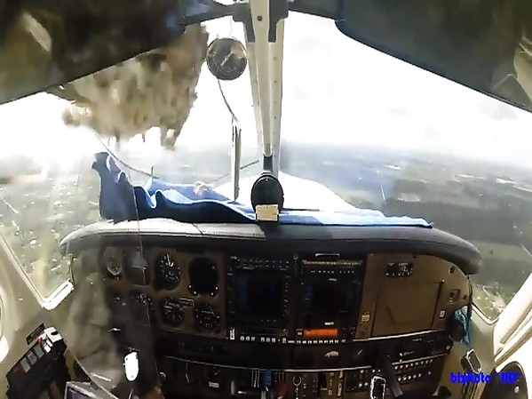 OISEAU TRAVERSE LA VITRE DU COCKPIT D'UN AVION EN FLORIDE