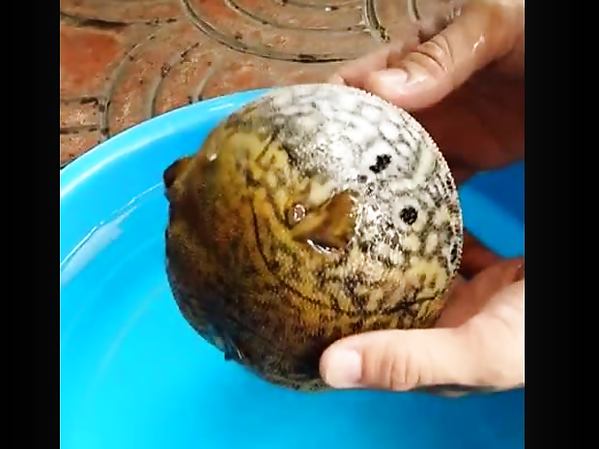 POISSON-GLOBE GONFLE COMME UN BALLON POUR SE DÉFENDRE