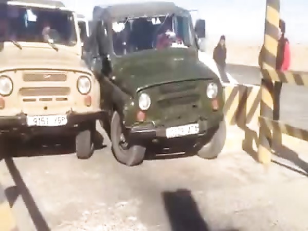 DES MONGOLS SE BATTENT POUR PASSER SUR UN PONT