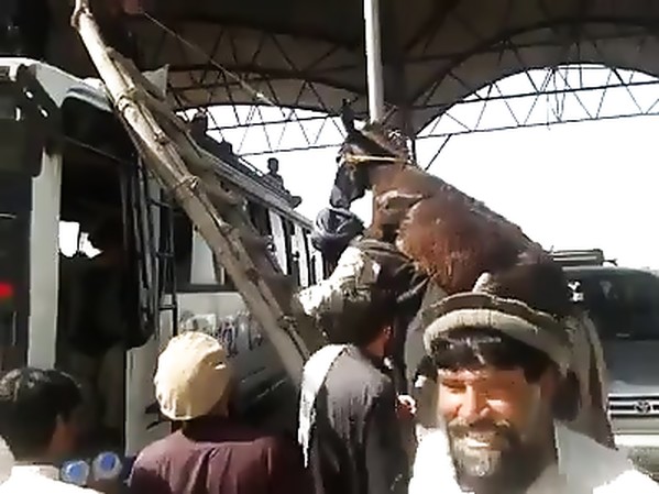 SEULEMENT AU PAKISTAN: IL MONTE AVEC SON ÂNE SUR LE TOIT D'UN BUS