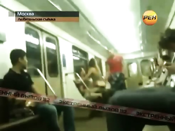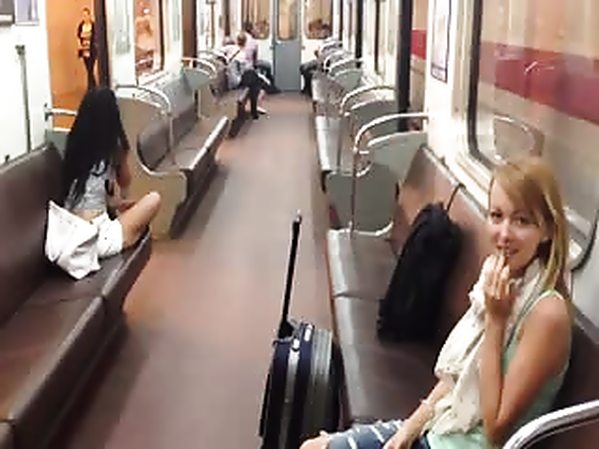 COUPLE RUSSE CHAUD TENTE DE COUCHER DANS LE MÉTRO, ET SE FAIT REMETTRE À SA PLACE
