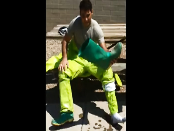 POMPIERS VIDE SES BOTTES, REMPLIES DE SUEURS SUITE À UNE INTERVENTION