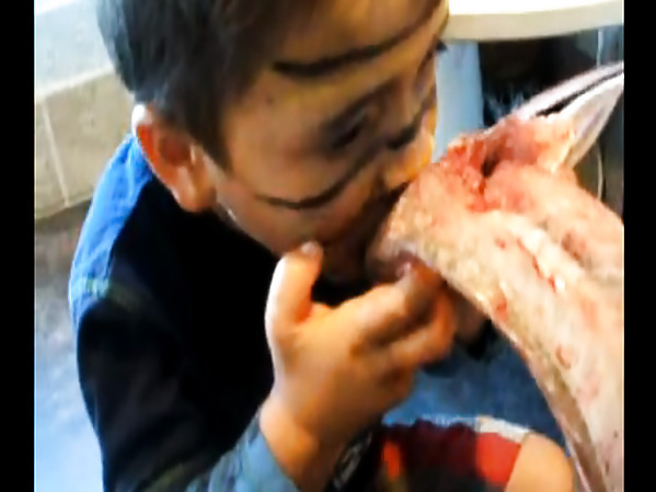 GAMIN MANGE UN OEIL DE POISSON