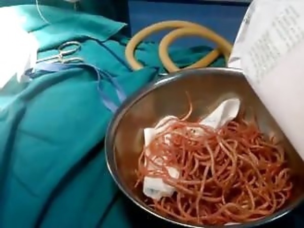DES VERS INTESTINAUX EXTRAITS DU VENTRE D'UN HOMME (VIETNAM)