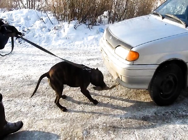 PITBULL TRACTE UNE LADA