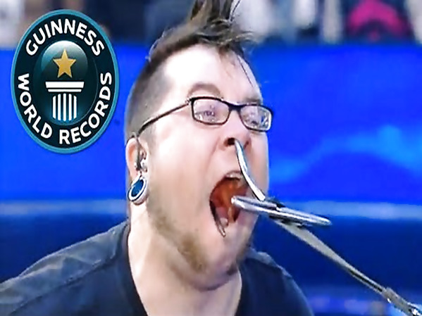 IL TRACTE UNE VOITURE AVEC UN CROCHET DANS LA BOUCHE