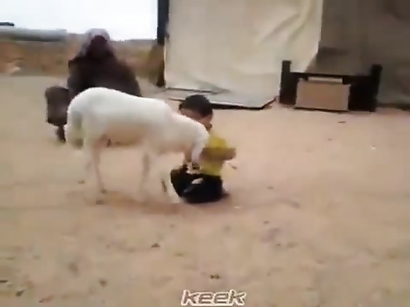 UN PÈRE SE MARRE À VOIR SON FILS SE FAIRE BRUTALISER PAR UN MOUTON
