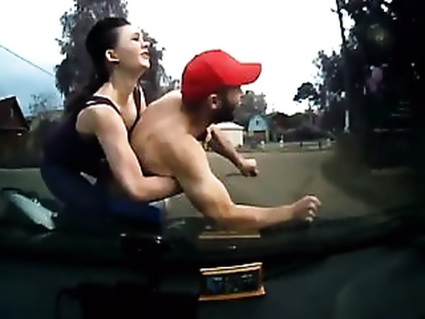 FOU PERCHÉ SUR UNE VOITURE DE FLICS REFUSE DE SE FAIRE ARRÊTER