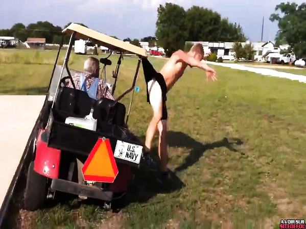 IL RESTE SUSPENDU APRÈS AVOIR SAUTÉ PAR DESSUS UNE VOITURE DE GOLF