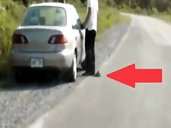 AUTOMOBILISTE SURPRIS ENTRAIN DE FAIRE UNE PETITE CROTTE S'ARRÊTE NET AU PASSAGE D'UNE VOITURE