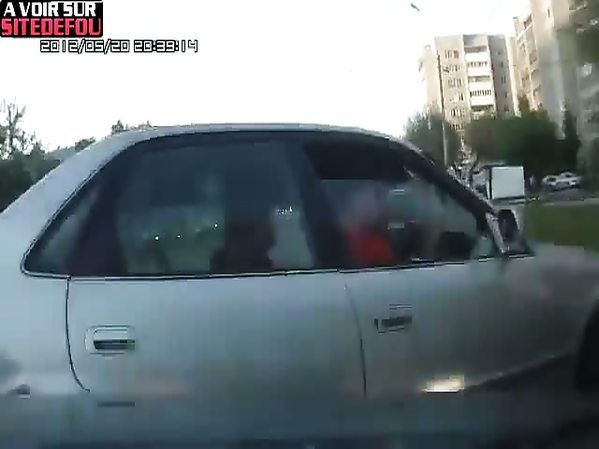 ABRUTI QUI FAIT UNE QUEUE DE POISSON SE FAIT CALMER PAR UN AUTOMOBILISTE QUI CONTINU SA ROUTE