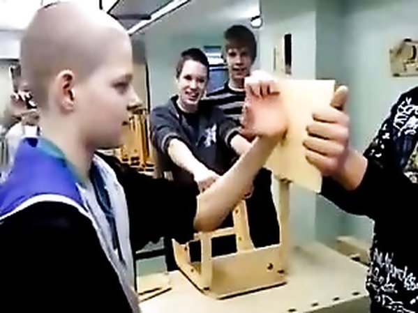 GAMIN IDIOT TENTE DE CASSER UNE PLANCHE DE BOIS AVEC SA TÊTE