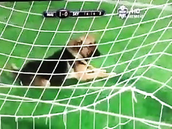 UN CHIEN REFUSE DE PARTIR LORS D'UN MATCH DE FOOT