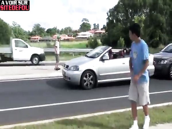 BLAGUE DE LA CORDE INVISIBLE AU MILIEU DE LA ROUTE CAUSE UN PETIT ACCIDENT