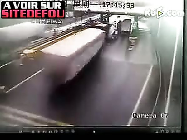 UN CAMION AVEC UN PROBLÈME DE FREINS DÉFONCE UN PÉAGE