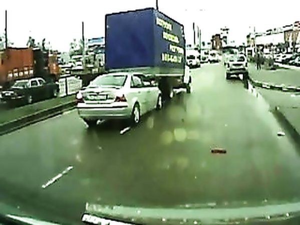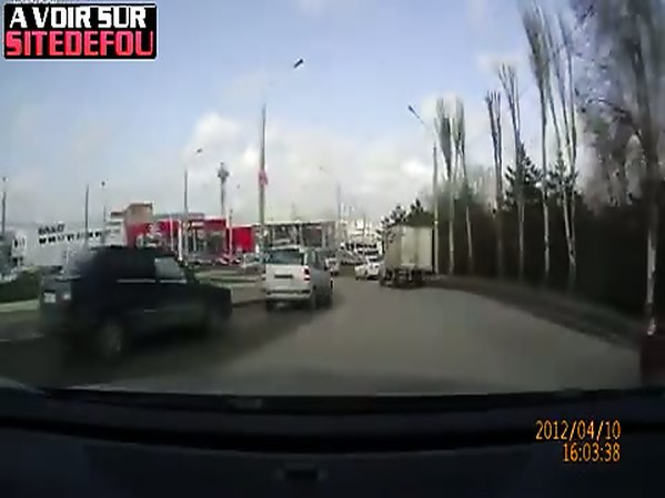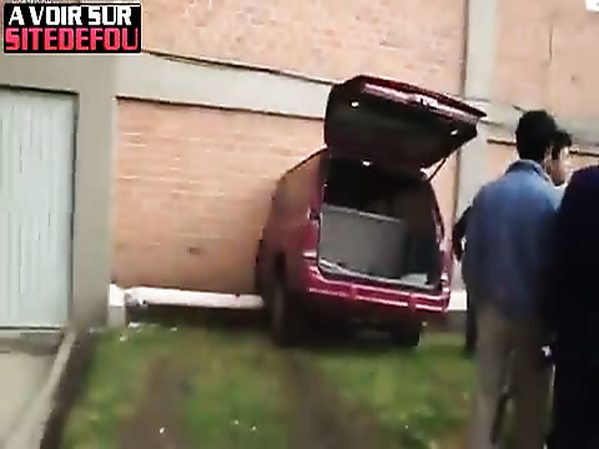 CHAUFFARD RECULE SANS SAVOIR CE QU'IL Y A DERRIÈRE LUI ET MONTE SUR UNE VOITURE