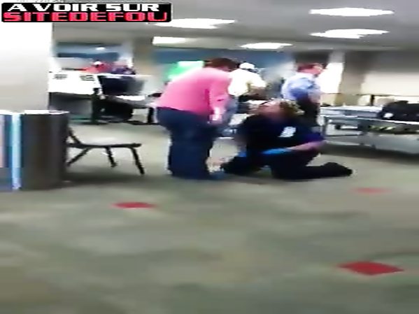 FEMME PLEURE EN SE FAISANT CONTRÔLER PAR DES AGENTS DE SÉCURITÉ À UN AÉROPORT