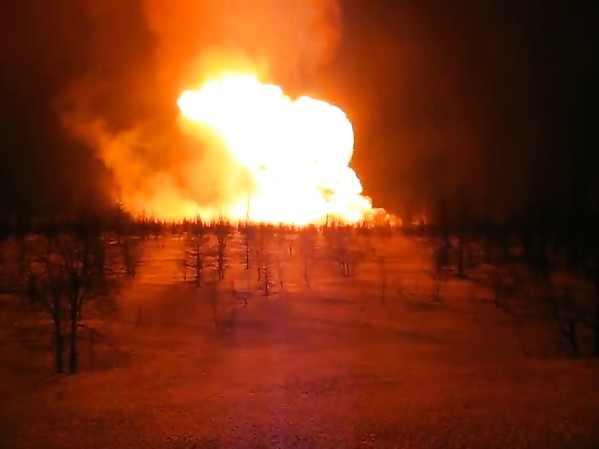 UN PIPELINE TRANSPORTANT DU GAZ EN FEU EN SIBÉRIE