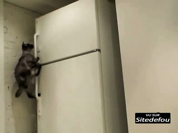CHAT MALIN OUVRE LE CONGÉLATEUR POUR Y PIQUER À MANGER