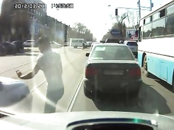 PIÉTON TRAVERSE AU MILIEU DU TRAFIC ET SE FAIT PERCUTER