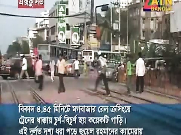 BUS RESTE COINCÉ SUR LA VOIE FERRÉE ALORS QU'UN TRAIN ARRIVE