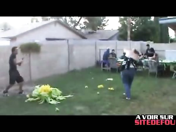 IDIOT LÂCHE SON BÂTON EN FRAPPANT UNE PIÑATA QUI PERCUTE VIOLEMMENT LE VISAGE D'UNE FEMME