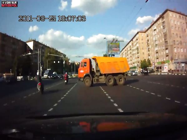 MOTARD PERCUTÉ PAR UNE GROS CAMION