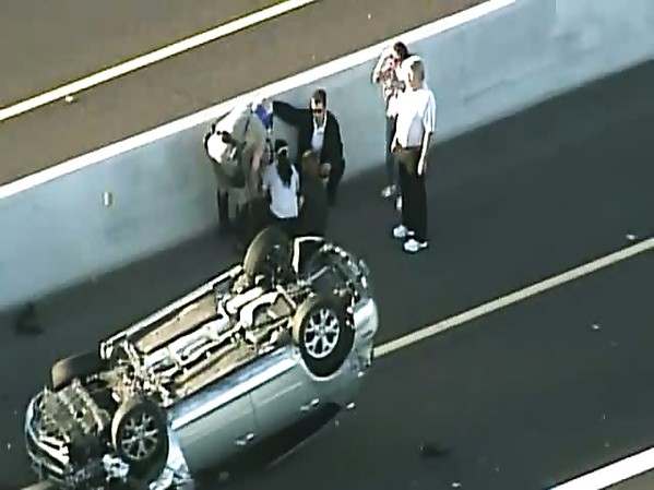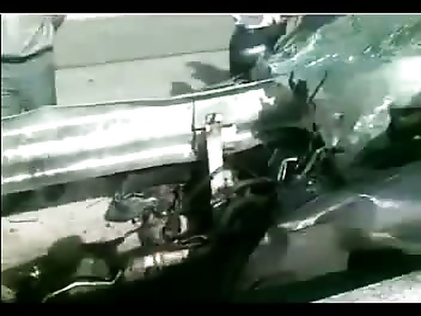 AUTOMOBILISTE S'ENCASTRE DANS LE RAIL DE SÉCURITÉ D'UNE VOIE RAPIDE