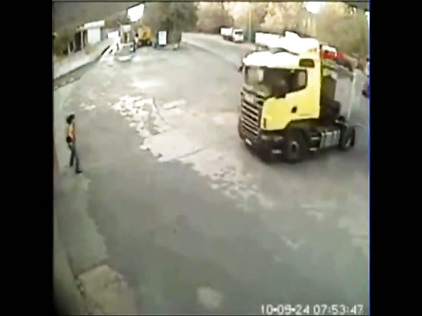 UN CAMION SE FAIT DÉFONCER ET DONNE NAISSANCE À UN HOMME