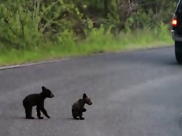 CUTE: 2 PETITS OURS BRUNS SE BATTENT SUR LA ROUTE