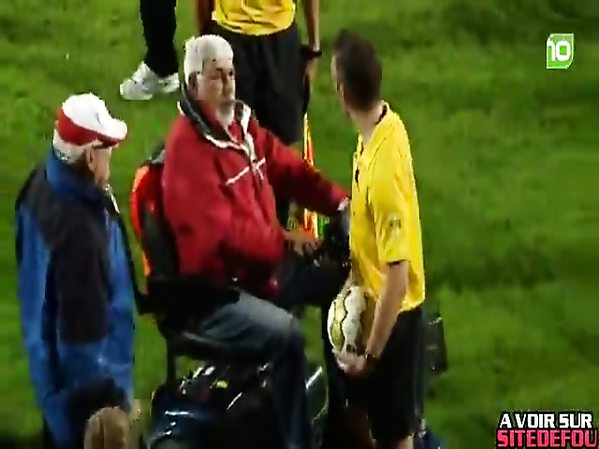 HANDICAPÉ ATTAQUE ARBITRE ET ESSAIE DE L'ÉCRASER AVEC SON FAUTEUIL
