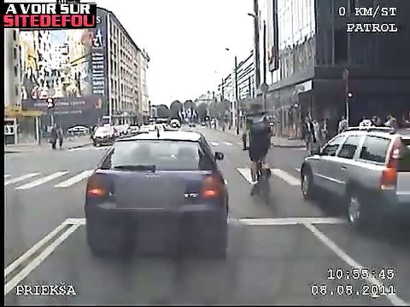 CYCLISTE TOMBE JUSTE DEVANT UNE VOITURE