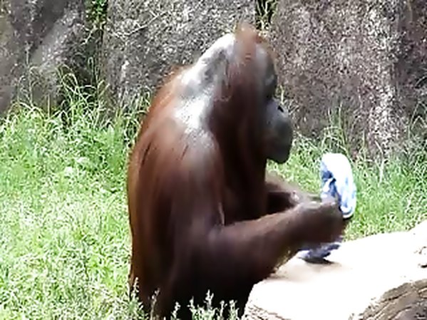 DES ORANG-OUTANS SE RAFRAICHISSENT À LA MANIÈRE D'UN HOMME (LA PLANÈTE DES SINGES, C'EST POUR BIENTÔT)