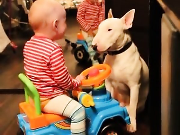 BÉBÉ S'AMUSE À FRAPPER UN BULL TERRIER