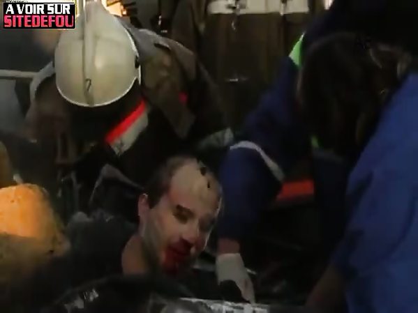 UN HOMME SAUVÉ D'UNE VOITURE EN FLAMME PAR LES POMPIERS (RUSSIE)