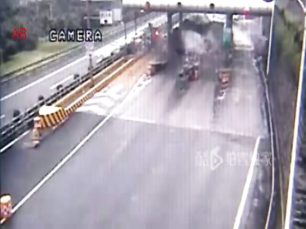 CAMION DÉFONCE TOUT SUR SON PASSAGE À UN PÉAGE
