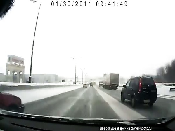 AUTOMOBILISTE PASSE TRÈS PRÈS DE SE FAIRE ÉCRASER PAR UN POIDS LOURD