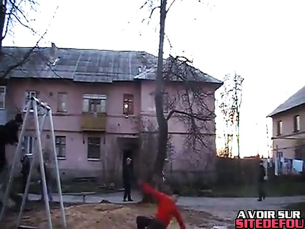 RUSSE BALAISE FAIT UN DOUBLE SALTO ARRIÈRE À L'AIDE DU BALANÇOIRE