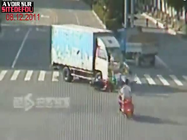 2 SCOOTERS PERCUTENT UN CAMION QUASIMENT EN SIMULTANÉ