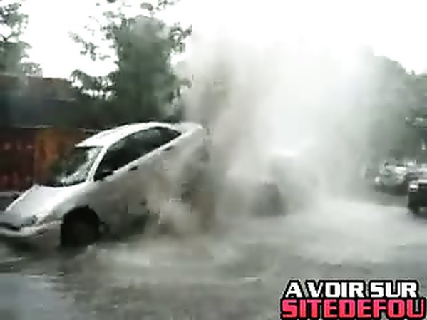 L’EAU DES ÉGOUTS SOULÈVE UNE VOITURE À MONTREAL