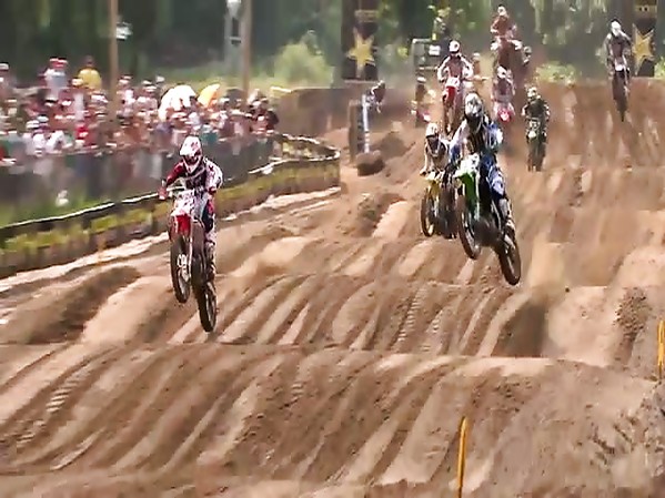 UN MOTARD S'ENVOLE LORS D'UNE COURSE DE MOTOCROSS (ET REPART DE SUITE!)
