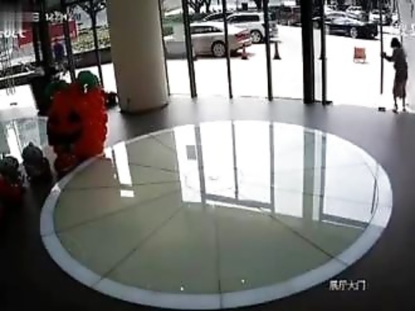 UNE FEMME FAIT SAUTER UNE PORTE VITRÉE (CHINE)